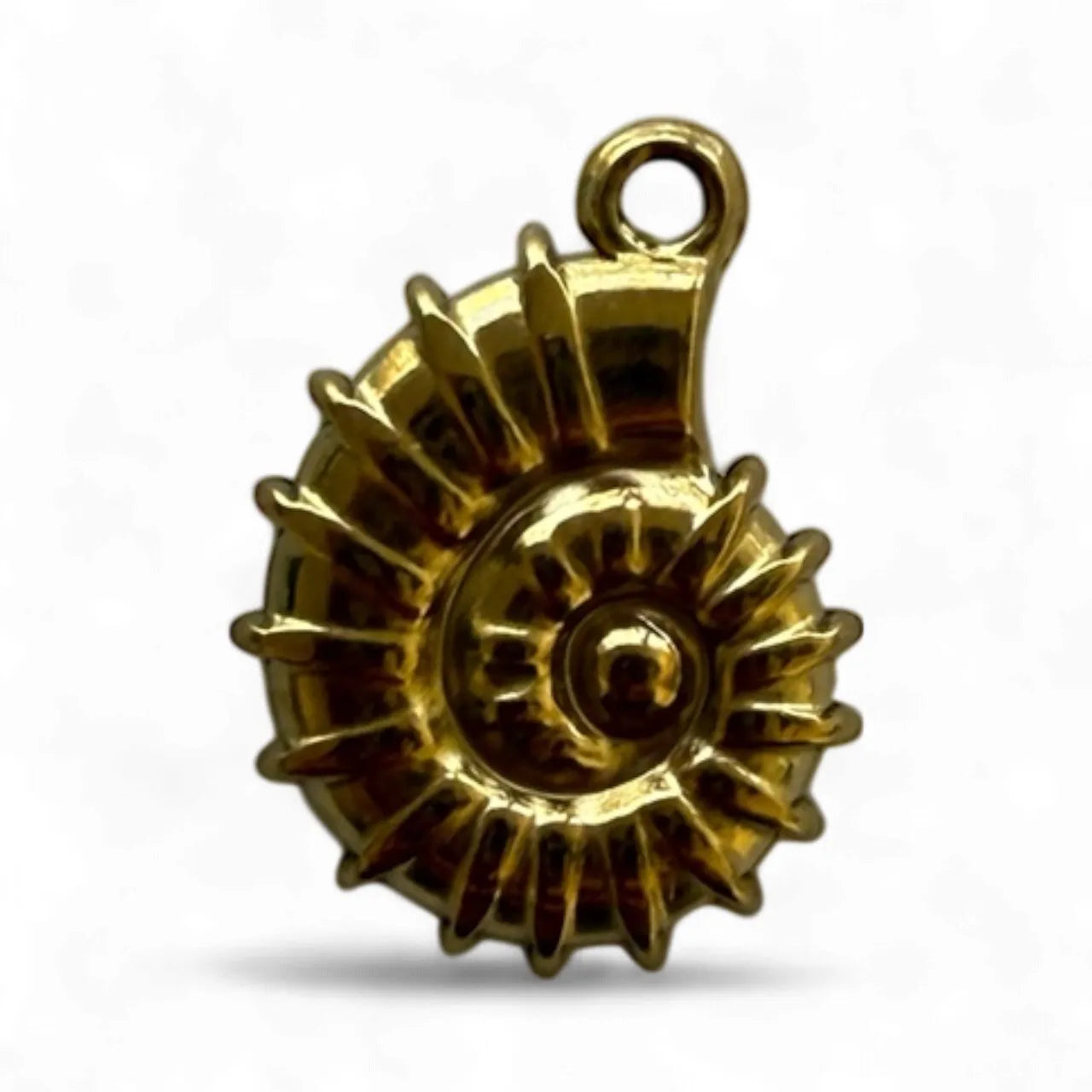 The shape of this charm is called an ammonite — a spiral, chambered shell pattern inspired by ancient marine fossils. It’s often associated with evolution, natural beauty, and grounding energy, and it’s a popular motif in jewelry for its organic spiral form symbolizing growth and continuity.